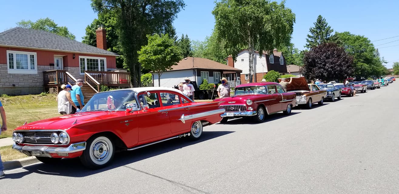 Due to the Covid-19 pandemic, our Classic Car Show looked a little bit different. Instead of our usual all day show and BBQ, we had our classic cars parade through the parking lot and then stop for Community Members of V!VA Pickering Retirement Community to check them out up close. We had 17 classic relics this year!