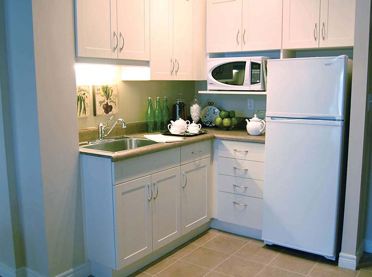 Kitchenette with 23" wide apartment size appliances and microwave (Independent Living suites only)