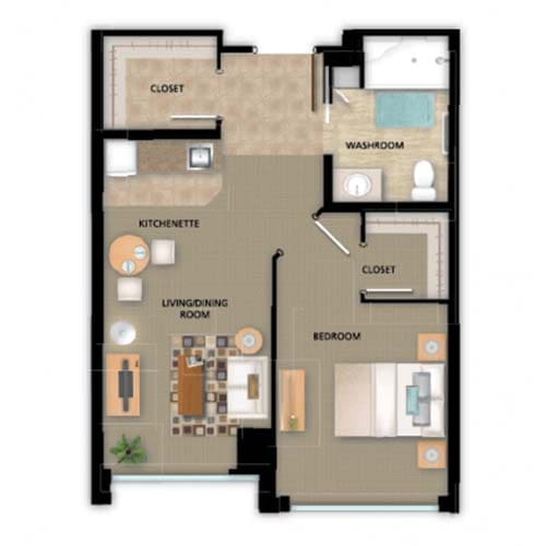 When we design our suites, we take out time to think about what is most important to our Community Members. For example, our spacious suites include walk-in closets, because we appreciate how important storage is when moving from a larger home. Our kitchenettes feature 23" wide apartment size appliances instead of smaller bar-fridge models because we know that sometimes you just want to prepare a snack for the grandchildren instead of heading over to the dining room. Plus, our bathrooms feature a walk-in shower and safety bars so you can bathe with peace-of-mind.