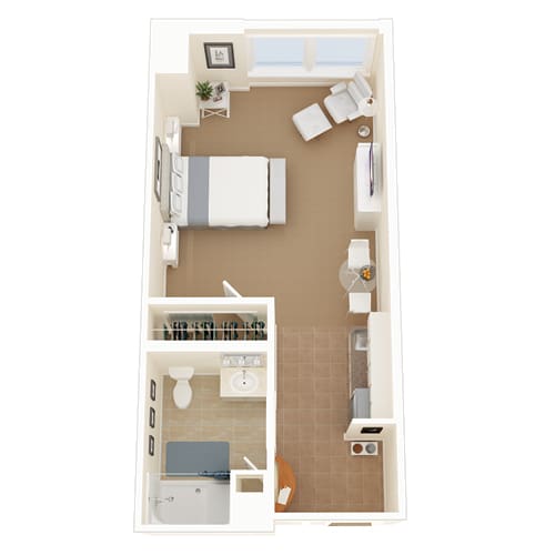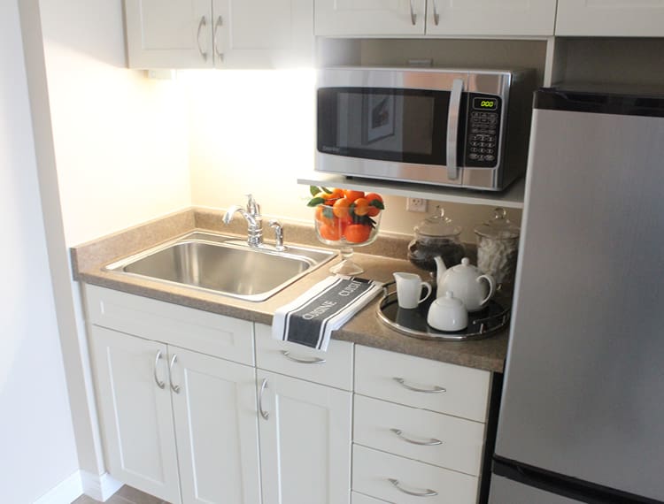 Beautiful. Spacious. Convenient. Safe. Floor to ceiling, wall to wall, our suites have been thoughtfully designed to be bright, spacious, welcoming and comfortable. At VIVA, we take out time to think about what is most important to our Community Members. Our kitchenettes feature full-size refrigerators instead of smaller bar-fridge models because we know that sometimes you just want to prepare a snack for the grandchildren instead of heading over to the dining room. Plus, our bathrooms feature a walk-in shower with a built-in seat and safety bars so you can bathe with ease and peace of mind.