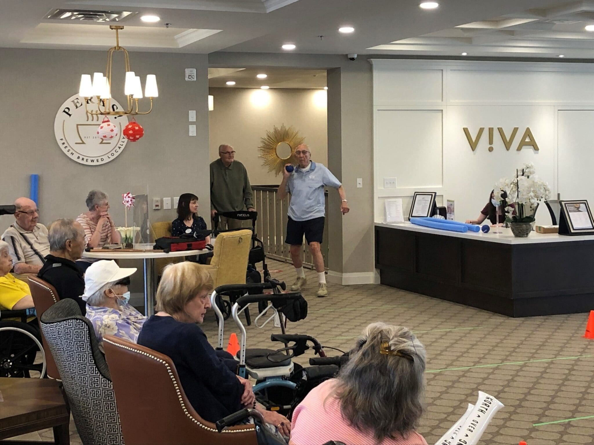 The V!VA Olympics returned this year, with many of our Community Members participating in sports to see who can get the gold! The V!VA Oakville Olympic Games included Soft Shot Put and Pool Noodle Javelin Throwing. Afterwards, a medal ceremony was held for our winners, and viewing the Olympic Games in Tokyo over a drink at our on-site pub, Pints!