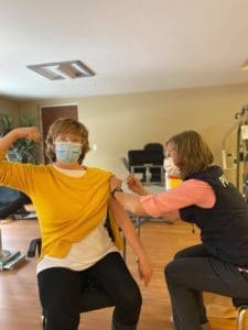 Waterside’s Wellness Team – having come to be affectionately known as “the Waterside Wellness Warriors” – worked with Public Health to vaccinate Community Members and Team Members, to great appreciation and celebration of the entire Community!